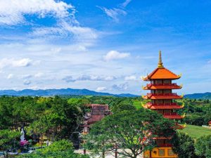 Chiều: 15h30 Đoàn khởi hành đi tham quan Tu Viện Bát Nhã thuộc xã Đ’Bri Bảo Lộc – cảnh sắc thiên nhiên hữu tình, đồi chè xanh bao quanh tu viện cho du khách có những bức ảnh đẹp. Đồng thời khám phá lỗi kiến trúc đậm nét Á Đông của các: công trình tại tu viện.